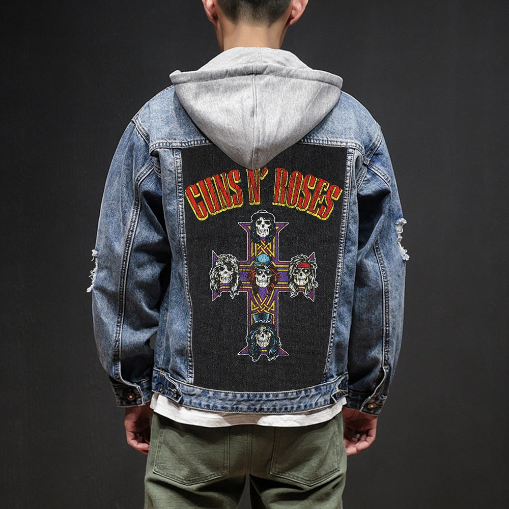 Bloodhoof Store Guns N' Roses Rock And Roll Death Heavy Hardcore Punk Style Patch Designs Denim Jeans mens Jackets And Coats